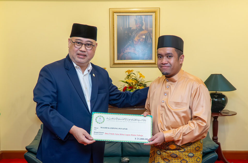 Sumbangan diterima oleh Awang Mohd Abd Wafiy bin Haji Abd Kadiroshman, Imam Masjid Kampong Penapar, Mukim Tanjong Maya, Daerah Tutong.